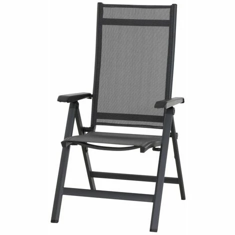 Klappsessel Tesoro, 5-fach verstellbar, Gestell aus Aluminium pulverbeschichtet in matt anthrazit, Flächen aus Ranotex®-Gewebe 2*1 in schwarz silber in schwarz, Armlehnen aus KunststoffFarbe: silber/schwarzMaße: 68x59x110 cmMaterial: Aluminium pulverbeschichtetFlächen aus Ranotex®-Gewebe 2*1Rückenlehne 4-fach verstellbarSitzhöhe: 44 cmGewicht: 5kgpulverbeschichtet